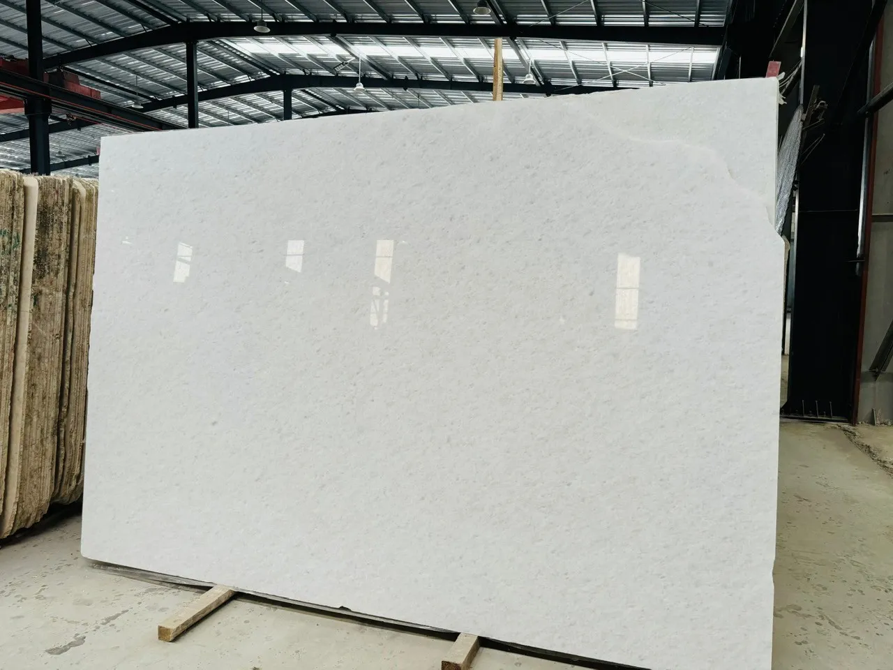 Tấm đá trong hình mang sắc trắng tinh khiết, bề mặt mịn màng như phủ một lớp sương mai nhẹ nhàng. Vẻ đẹp giản dị nhưng thanh thoát này gợi cảm giác thuần khiết, trong trẻo, phù hợp để tạo nên những không gian sang trọng, tinh tế và bền vững với thời gian. Đây là sự lựa chọn hoàn hảo cho những ai yêu thích phong cách tối giản nhưng vẫn muốn giữ được nét đẳng cấp vượt thời gian.