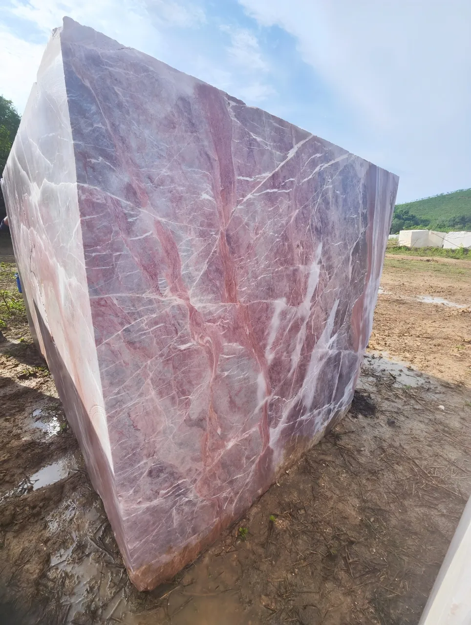 Khối đá trong hình mang vẻ đẹp ấn tượng với sắc hồng tím hòa quyện cùng những đường vân trắng tự nhiên, gợi cảm giác vừa mềm mại vừa mạnh mẽ. Mỗi bề mặt đá là một tuyệt tác nghệ thuật độc bản, mang lại sự sang trọng và khác biệt cho không gian. Đây là lựa chọn lý tưởng cho những công trình cao cấp, khẳng định phong cách và đẳng cấp riêng.